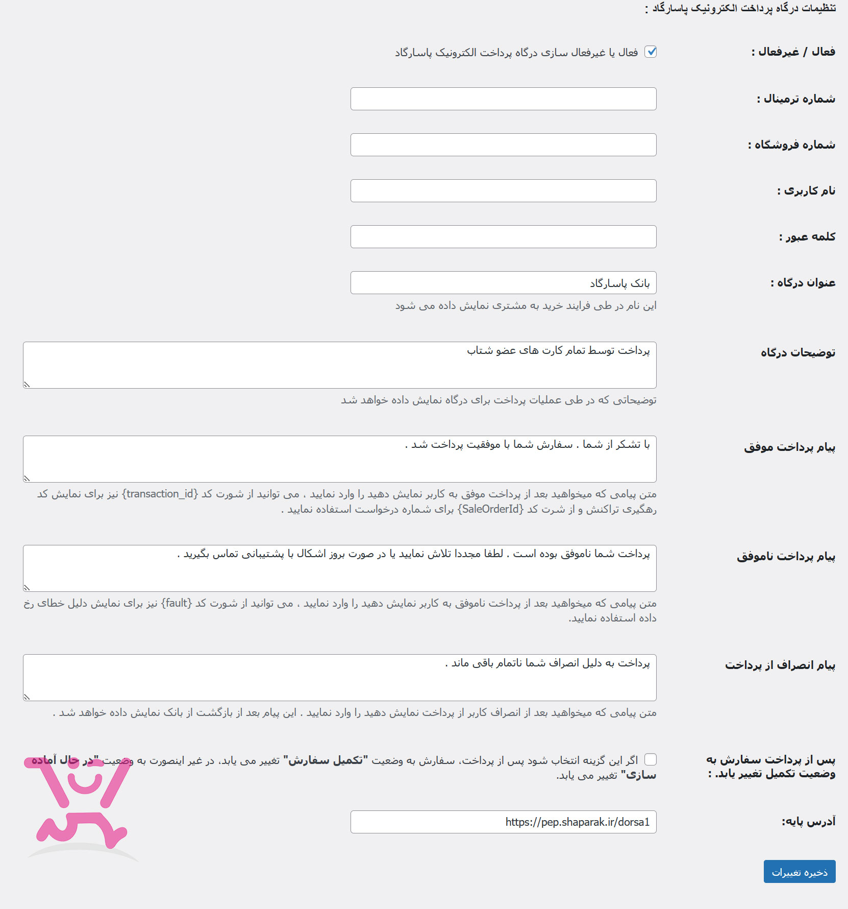 - تغییر دلخواه بخش پرداخت موفق – پرداخت ناموفق – انصراف و توضیحات درگاه توسط کاربر